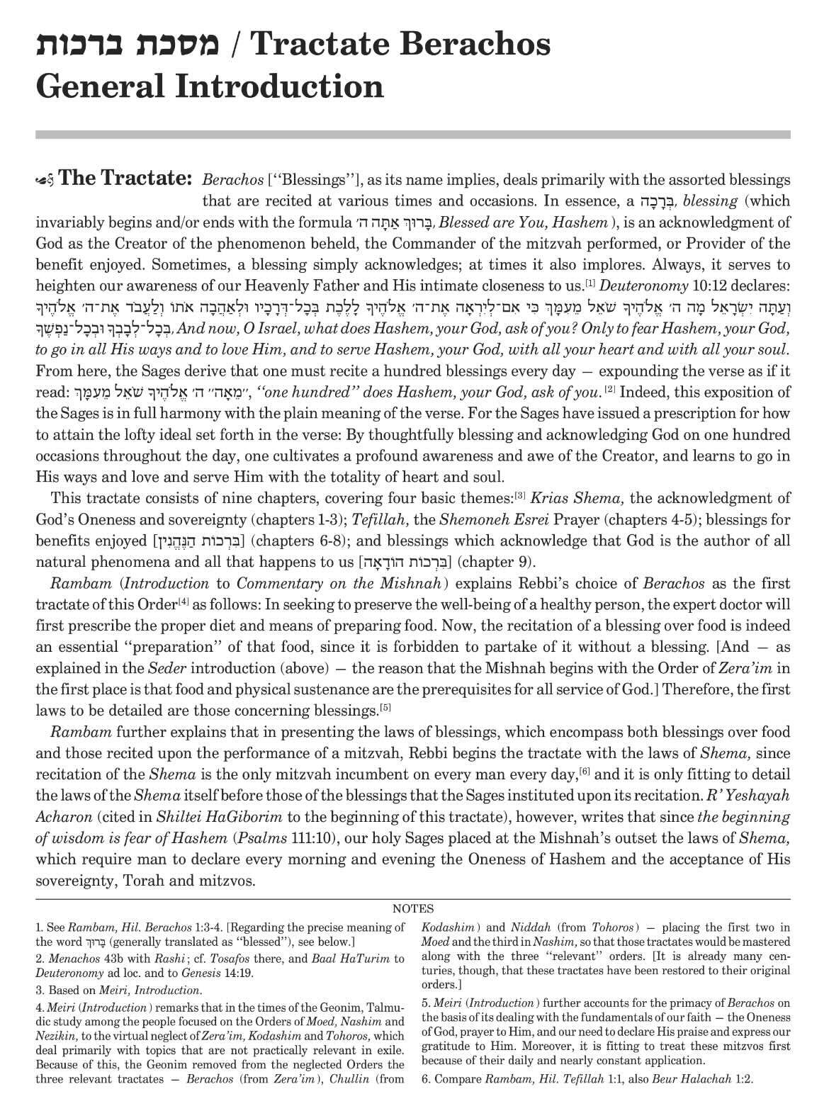 Each tractate opens with its own "General Introduction." The introduction to Tractate Berachos (Blessings), for instance, covers: