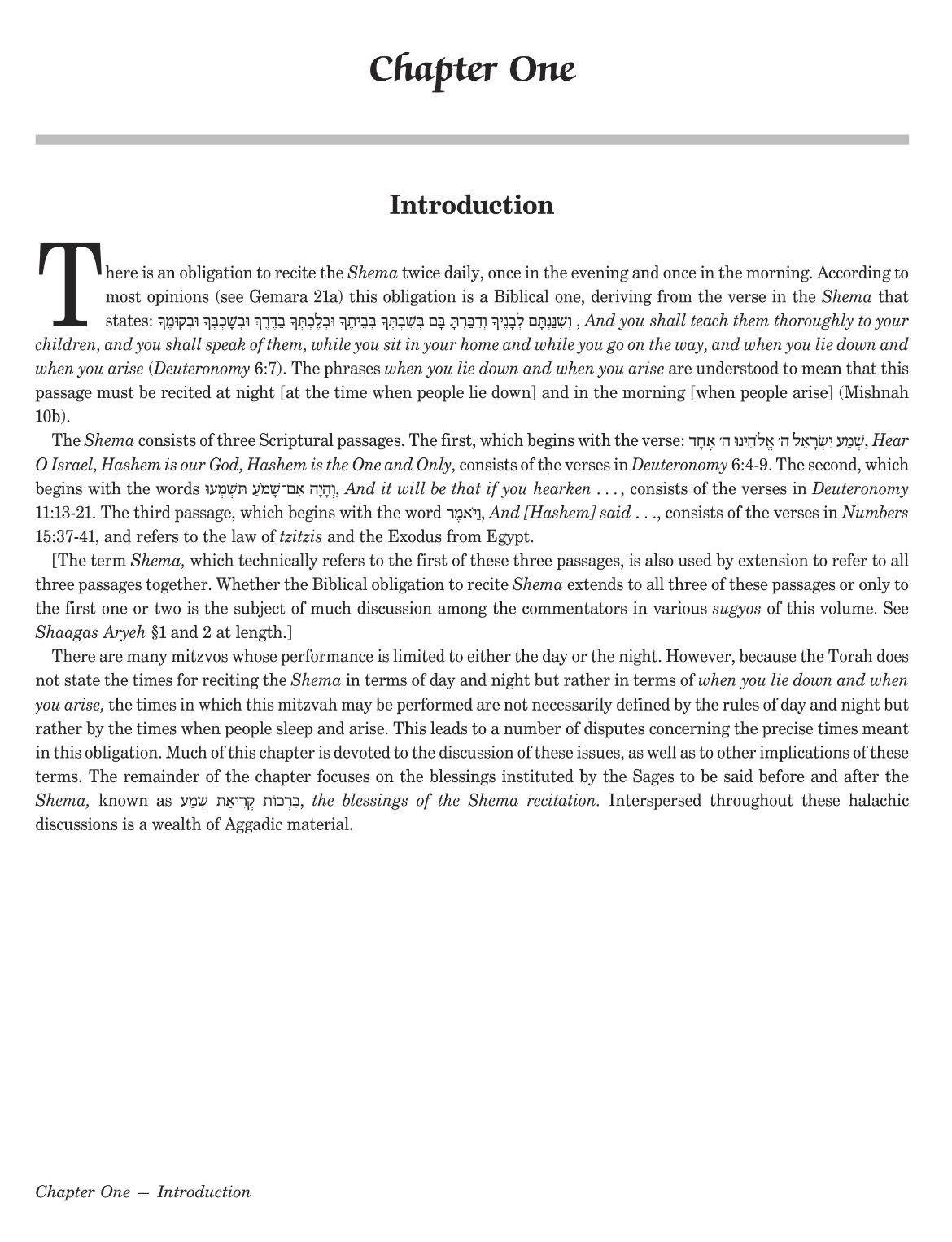 Each chapter begins with an introduction that previews the specific topics to be discussed. The Chapter One introduction in Berachos explains: