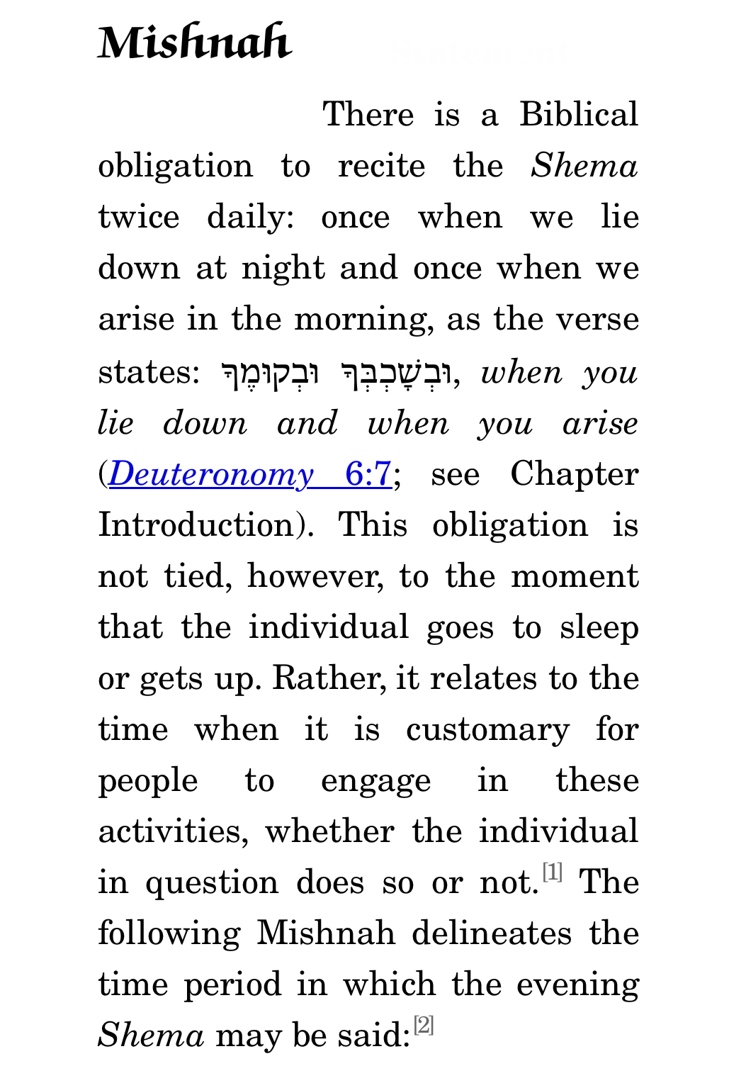 This logical structure can be seen clearly in the very opening Mishnah of Maseches Berachos. The Mishnah presents the issue of the nighttime recitation of Krias Shema: